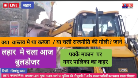लहार में नगर पालिका द्वारा घोषित अवैध कब्जा के पक्के घर पर चलाया बुलडोजर लोगो ने बताया राजनीतिक मसला लहार में नगर पालिका प्रशासन द्वारा मुख्य…