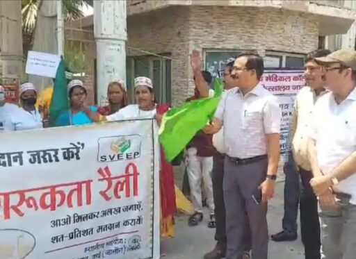 मतदाताओं को जागरूक करने के लिए गुरुवार को जिला निर्वाचन अधिकारी राजेश कुमार पांडेय ने राजकीय मेडिकल कॉलेज से मतदाता जागरूकता बैलगाड़ी रैली को हरी झंडी दिखाकर रवाना किया। यह जागरूकता बैलगाडी रैली राजकीय मेडिकल कॉलेज होते हुए जिला सत्र एवं न्यायालय होते हुए अंबेडकर चौराहा पहुंची। यहां से रैली, शहीद भगत सिंह चौराहा होते हुए टाउन हॉल में समाप्त हुई।20 मई को मतदान प्रतिशत बढ़ाने पर जोर रैली में मतदाताओं को जागरूक करने के लिए कठपुतली नृत्य का आयोजन किया गया। इसके साथ ही बैलगाड़ी के माध्यम से ज्यादा से ज्यादा मतदाताओं को जागरूक किया गया, जिससे 20 मई को ज्यादा से ज्यादा मतदाता पोलिंग बूथ पर पहुंच सके। मतदाता जागरूकता रैली के समापन अवसर पर जिला निर्वाचन अधिकारी राजेश कुमार पांडे ने सभी को संबोधित करते हुए कहा कि 20 मई को मतदान प्रतिशत ज्यादा से ज्यादा बढ़ सके।आमंत्रण पत्र घर-घर पहुंचाया जा रहा