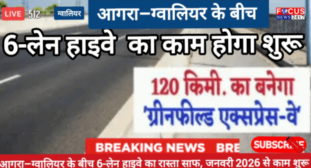 आगरा–ग्वालियर के बीच 6-लेन हाइवे का रास्ता साफ, जनवरी 2026 से काम शुरू ग्रीन फील्ड एक्सप्रेसवे (6-लेन हाइवे) के निर्माण की घोषणा, 15 जनवरी 2026 से…