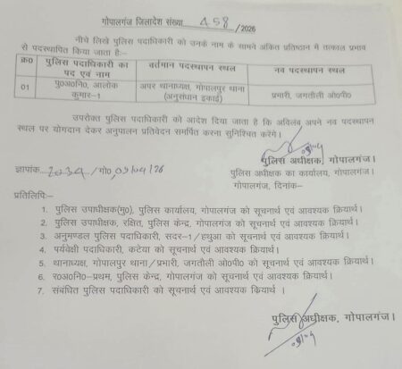 अपराध नियंत्रण पर फोकस, एसपी ने किया प्रशासनिक बदलाव गोपालगंज में प्रशासनिक फेरबदल, जगतौली ओपी को मिला नया प्रभारी गोपालगंज: जिले में कानून-व्यवस्था को और अधिक…