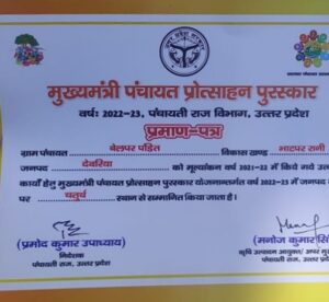 मुख्यमंत्री योगी आदित्यनाथ ने सरकारी मदद पर निर्भर रहने के बजाय आत्मनिर्भर बनने की नसीहत दी। प्रदेश सरकार द्वारा खुले में शौच मुक्त हो चुकी ग्राम पंचायतों के लिए पुरस्कार योजना शुरू की गई। साथ ही साथ सफाई बेहतर इंतजाम गांव के १००/ बच्चे व गर्भवती का शत-प्रतिशत टीकाकरण, सरकारी विद्यालयों में नियमित एमडीएम, आंगनबाड़ी केंद्रों पर नियमित पोषण आहार सहित अन्य बिंदुओं को देखते हुए उत्कृष्ट कार्य करने वाले पंचायत के ग्राम प्रधान को इस पुरस्कार से पुरस्कृत किया गया है। पुरस्कार के क्रम मे देवरिया जनपद मे उत्कृष्ट कार्य करने पर ग्रामसभा बेलपार पंडित को चौथा स्थान प्राप्त हुआ है। इसका श्रेय ग्राम पंचायत के वर्तमान प्रधान की ईमानदारी,निष्ठा पूर्वक कार्य करने के वजह से पुरस्कृत हुई है। यह क्षेत्र के लिए गौरव की बात है। कुछ बिंदुओं पर और भी उत्कृष्ट कार्य किए गए हैं, जिसमें जलयुक्त गांव, स्वच्छ एवं साफ गांव ,सुशासन वाला गांव ,महिला हितैषी गांव आदि सम्मिलित है ।