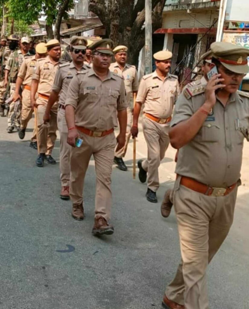 देवरिया जनपद देवरिया में प्राप्त अर्द्धसैनिक बल सीआईएसएफ की कम्पनी द्वारा थाना महुआडीह के संवेदनशील क्षेत्रों में महुआडीह पुलिस टीम द्वारा रामपुर गौनरिया, लक्ष्मीपुर आदि क्षेत्रों में तथा थाना भटनी के संवेदनशील क्षेत्रों में भटनी पुलिस टीम व अर्द्धसैनिक बलों द्वारा