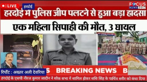 हरदोई में पुलिस जीप पलटने से बड़ा हादसा महिला सिपाही की मौके पर ही मौत