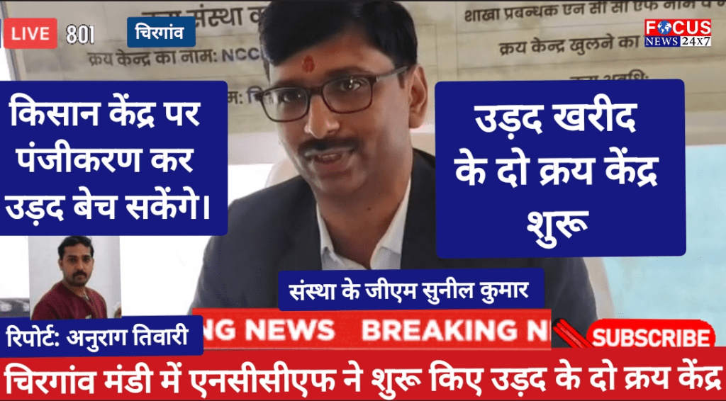 चिरगांव। आत्मनिर्भर कृषि अभियान के तहत एनसीसीएफ ने चिरगांव गल्ला मंडी में उड़द खरीद के दो क्रय केंद्र शुरू किए। उद्घाटन संस्था के जीएम सुनील कुमार ने किया।