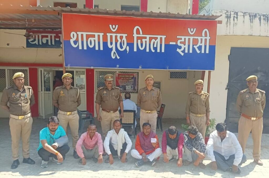 भगदड़ के दौरान पुलिस ने 7 लोगों को पकड़ लिया। तथा एक युवक मौके से फरार हो गया पुलिस ने कस्बा पूंछ निवासी सौरव यादव, ग्राम फतेहपुर स्टेट निवासी मलखान सिंह, गजराज सिंह, ग्राम बडेरा निवासी पंकज यादव, माखन बरार थाना कैलिया के ग्राम पहाड़गांव मिथिलेश एवं देवेंद्र तथा मौके से फरार कस्बा पूंछ निवासी अनुग्रह के खिलाफ जुआ अधिनियम के तहत मुकदमा पंजीकृत कर चालान कर दिया।