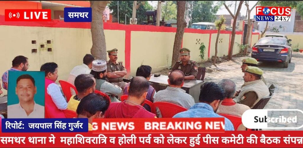 समथर थाना मे महाशिवरात्रि व होली पर्व को लेकर हुई पीस कमेटी की बैठक संपन्न