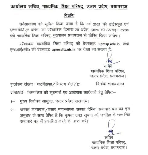 यूपी बोर्ड की हाईस्कूल और इंटरमीडिएट परीक्षा 2024 का रिजल्ट घोषित होने की तारीख का एलान हो गया है.