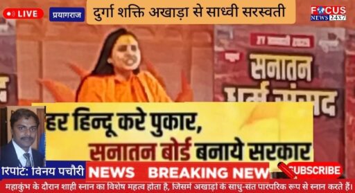 प्रयागराज में आयोजित सनातन धर्म संसद में साध्वी सरस्वती ने अपने भाषण में सनातन धर्म के विरोधियों पर कड़ा प्रहार किया।