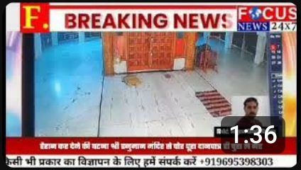 पूरी घटना मंदिर में लगे सीसीटीवी कैमरे में कैद हो गई. घटना बड़ागांव थाना अंतर्गत पारीछा कस्बे मे स्थित हनुमान जी के मंदिर की है.
