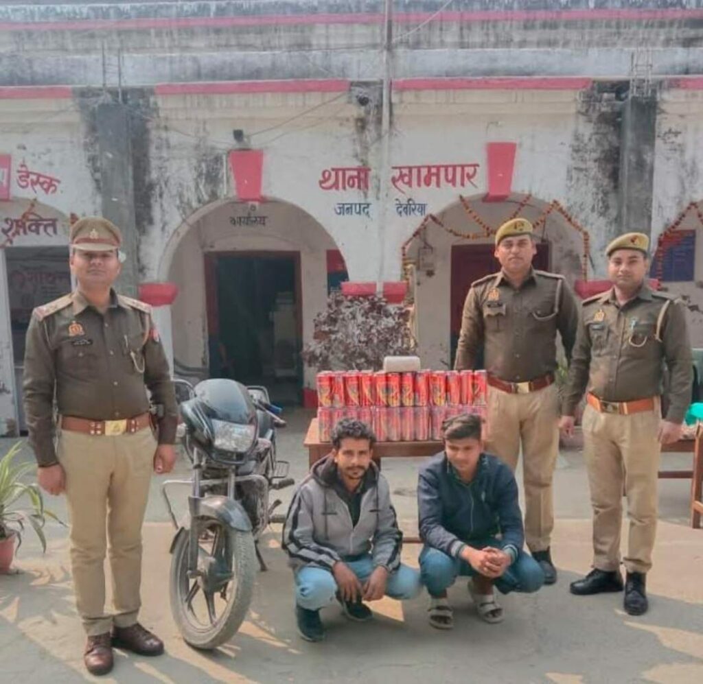 दो अभियुक्तो को खामपार थाना की पुलिस ने दो बोरी बियर के साथ किया गिरफ्तार।